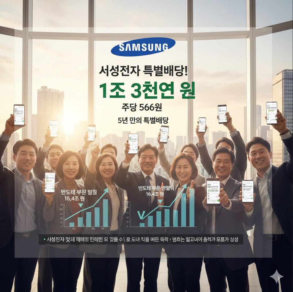 삼성전자 주주들에게 아주 반가운 소식이 전해졌습니다! 바로 1조 3천억 원 규모의 특별배당 소식인데요. 이는 2020년 이후 5년 만의 특별배당이라 더욱 주목받고 있습니다. 1주당 566원이라는 구체적인 금액까지 발표되면서, 많은 투자자들의 기대를 모으고 있습니다.